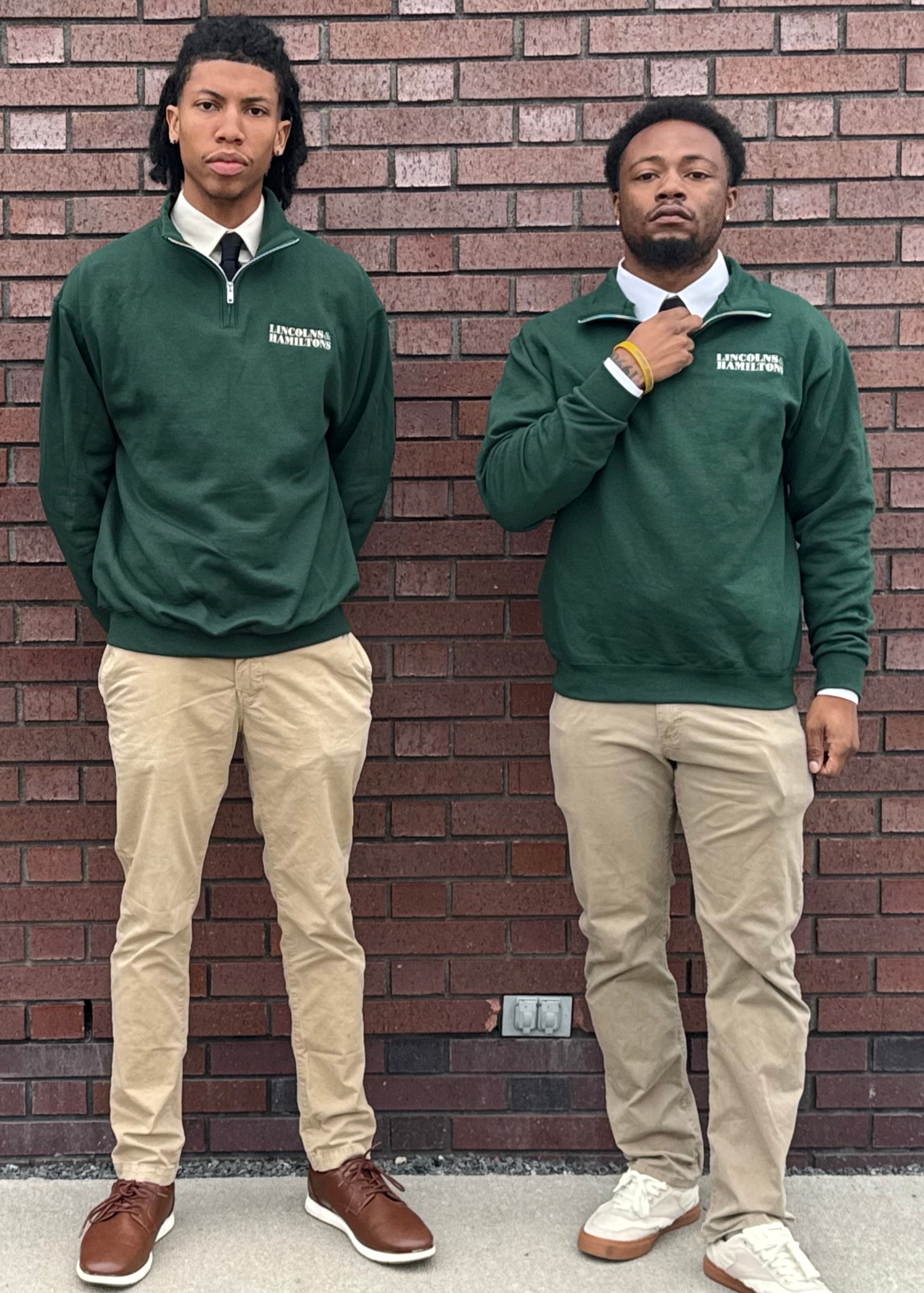 Lincolns and Hamiltons was founded by Kolby Cuthrell and Nathan Bailey, both of whom attended North Carolina A&T State University (NCAT). The brand was born out of their shared experiences and a relationship built on perseverance, creativity, and community. Inspired by the challenges and limitations placed on them by the school, Kolby and Nathan turned those obstacles into motivation — creating a brand that not only defies restrictions but also empowers others to push past boundaries and embrace their individuality.